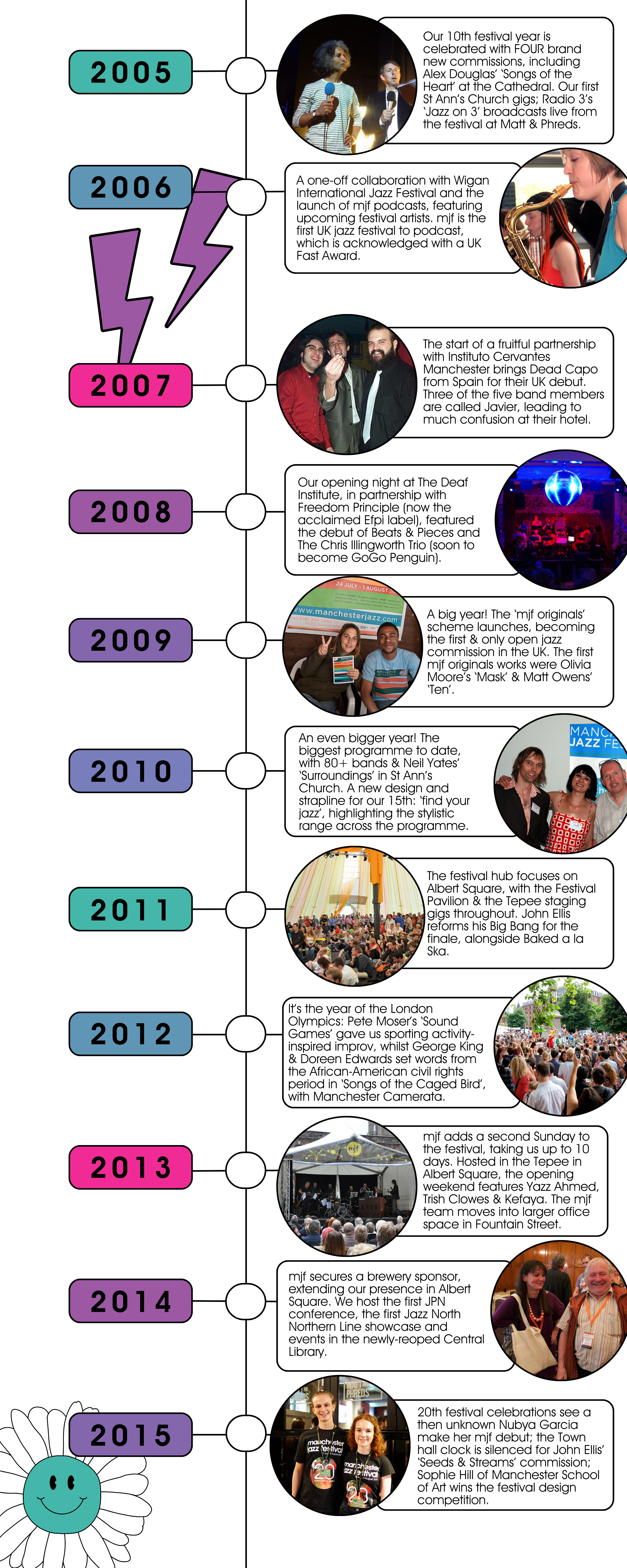 It’s fair to say that from this day in August, the festival has grown considerably into the 10 day event we know mjf to be. A festival working across multiple venues in Manchester and hosting a range of genre-pushing, contemporary, homegrown and international artists. But above all, mjf has stayed true to its ethos: a place for artists to find themselves, and for audiences to lose themselves.